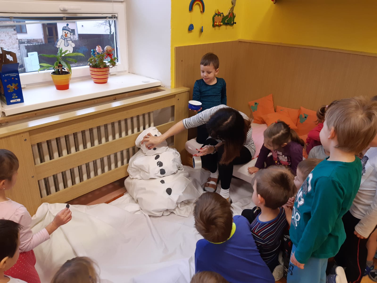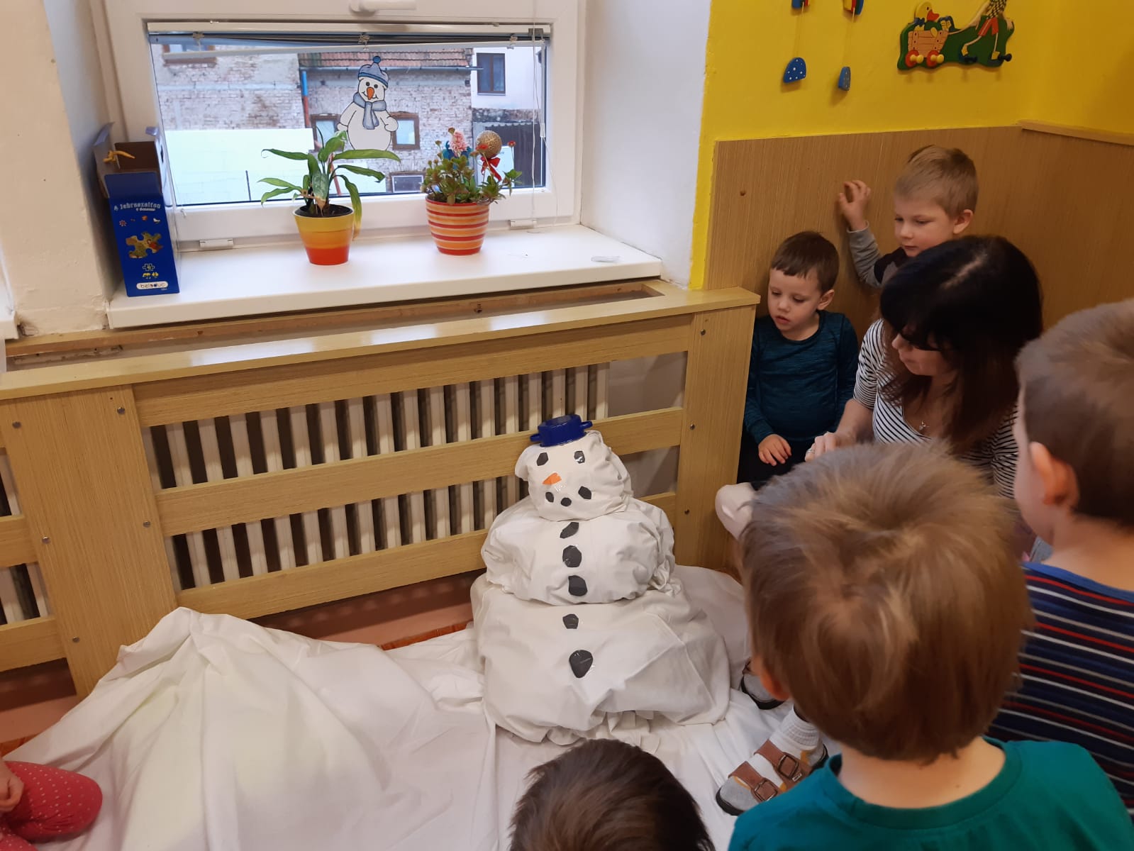 Zima, sněhulák a kreslení ledem